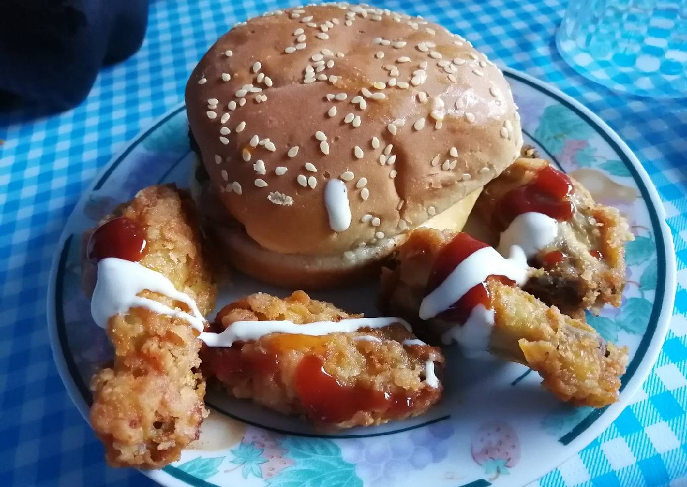 - Después de esas horas pasar las alitas por harina de trigo, calentar aceite y freír las alitas hasta que estén doraditas. Para comer agregar unas gotitas de salsa habanero, gotitas de limón, salsa Bbq y aderezo y listo a disfrutar. Sí lo desean acompañar con hamburguesa.