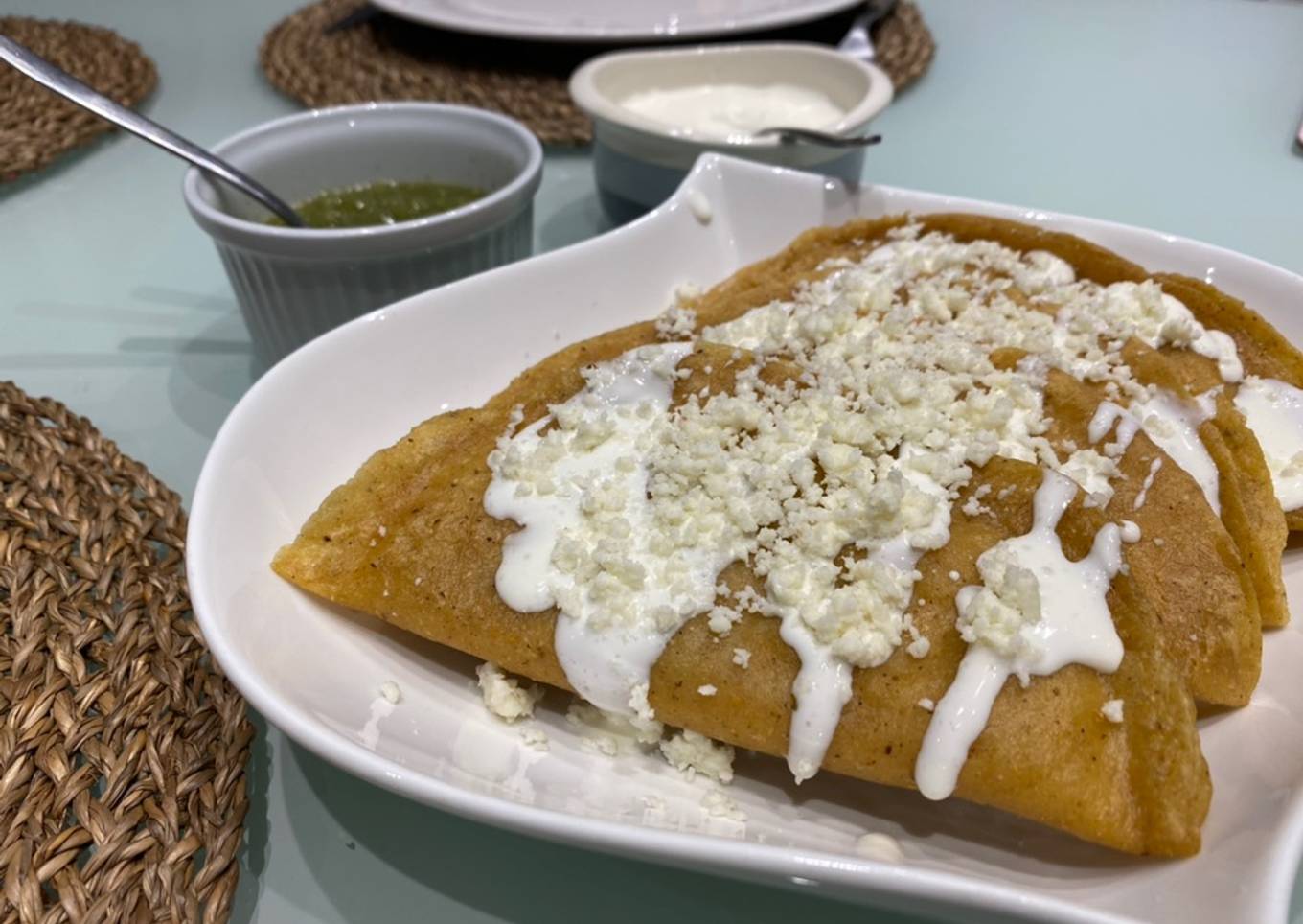 - Freir en cantidad suficiente de aceite hasta que esten más doradas y crocantes. Disfrutar con crema, salsa al gusto, queso fresco desmoronado y lechuga. Yo justo no usé lechuga porque no tenía 😅 pero les queda muy bien!