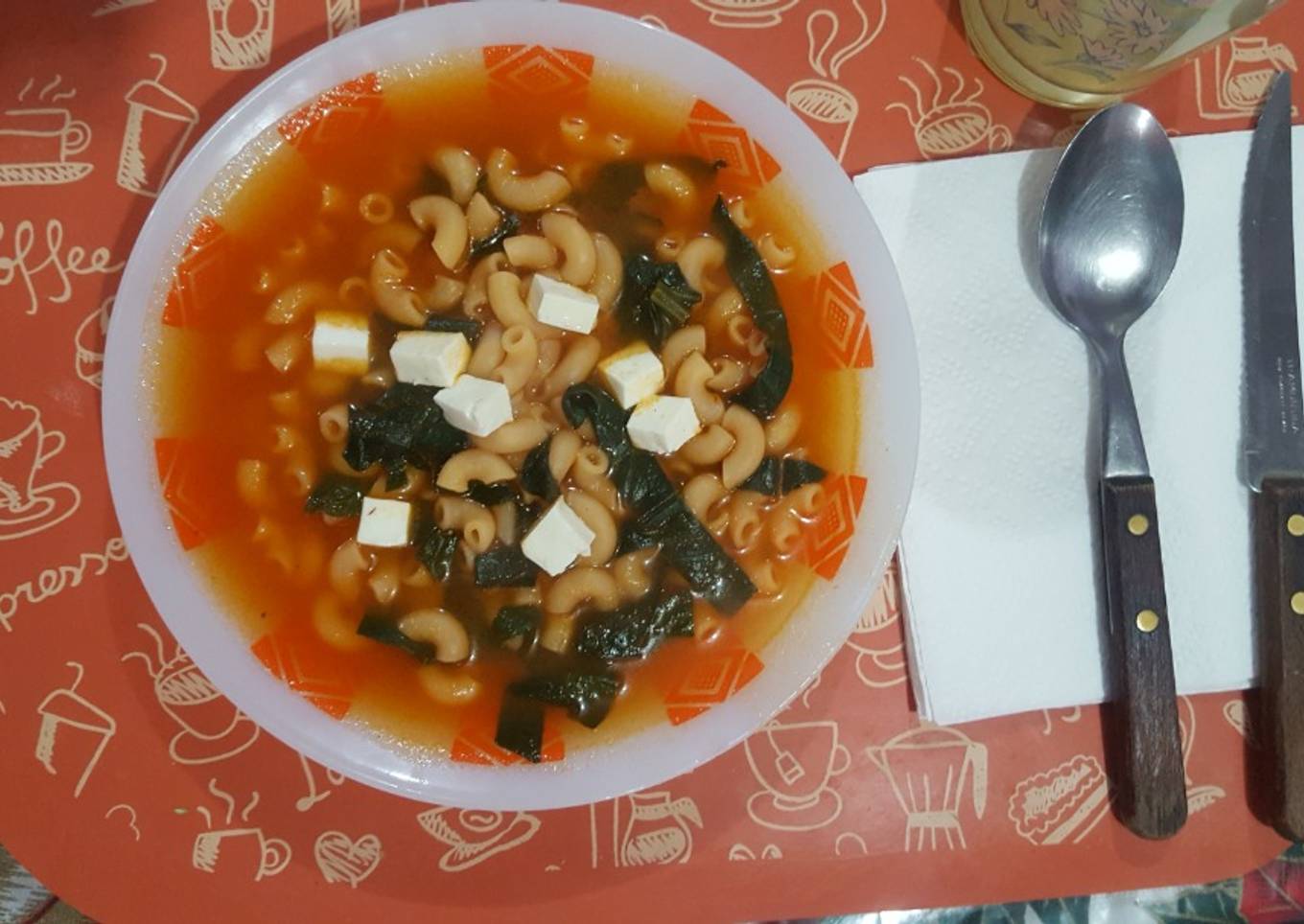 Sopa fácil y rápida de codito con espinacas
