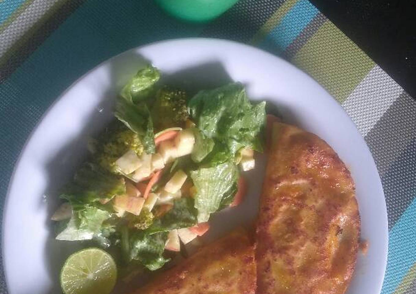 Un día antes preparé barbacoa de soya y ensalada. Hoy por la mañana solo prepare la soya en taquitos dorados en el comal con un poco de aceite de oliva.