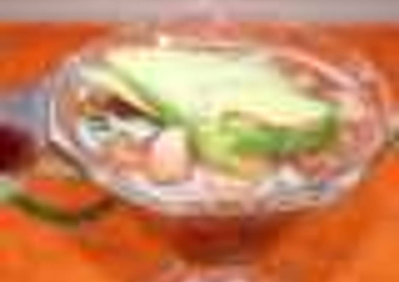 - Vaciar en copas cockteleras y encima se le pone aguacate en cuadritos y una mitad de Limón.