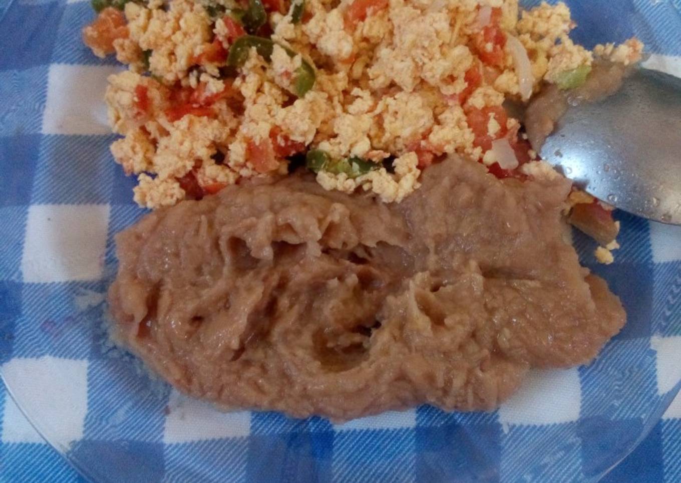 - Y ya solo por último revuelve bien, bien hasta que se haya cocido el huevo. Listo para desayunar. Puedes acompañar con unos frijoles refritos.😋