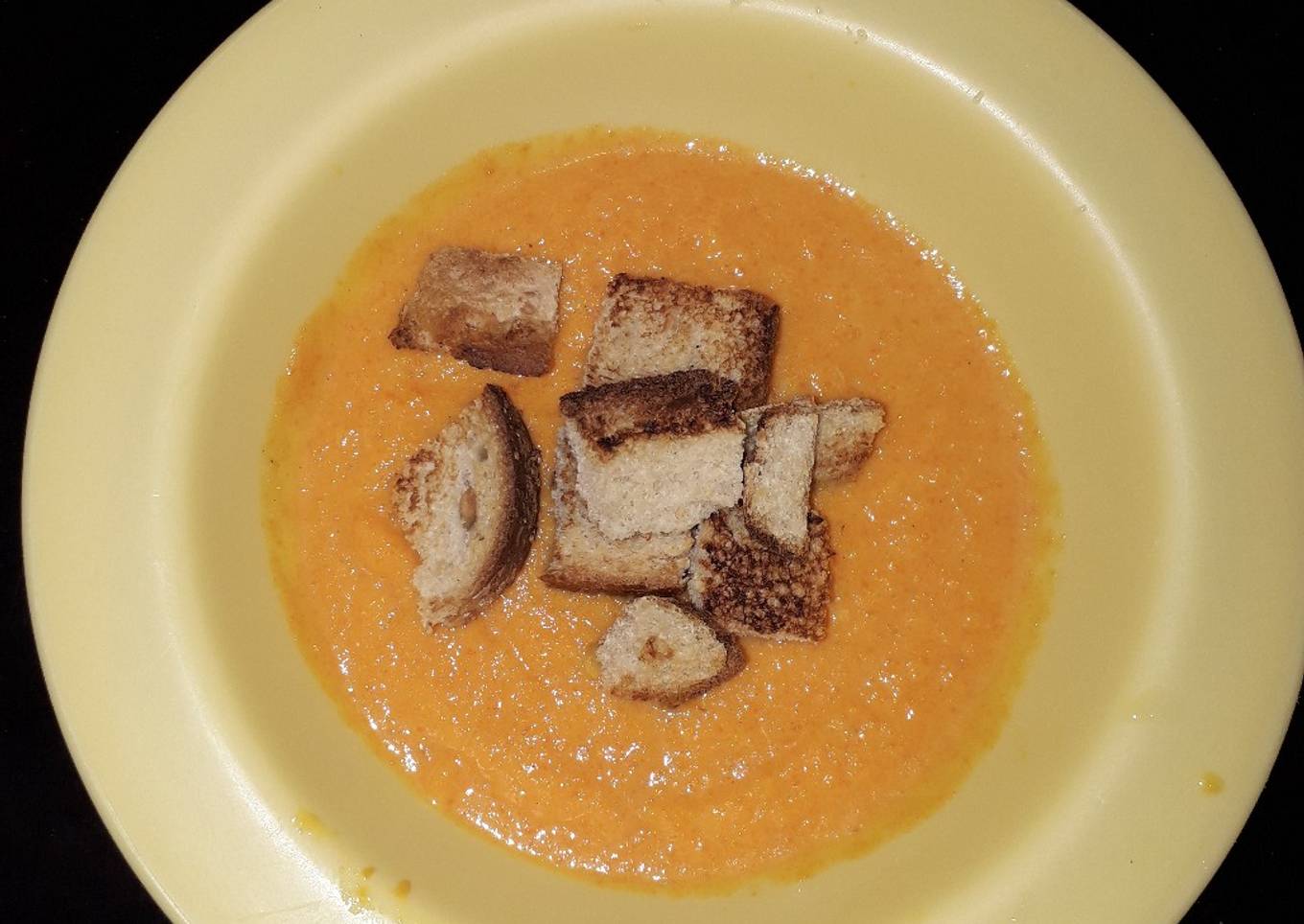 - He tostado un poco unos trozos de pan integral para acompañar mi crema.