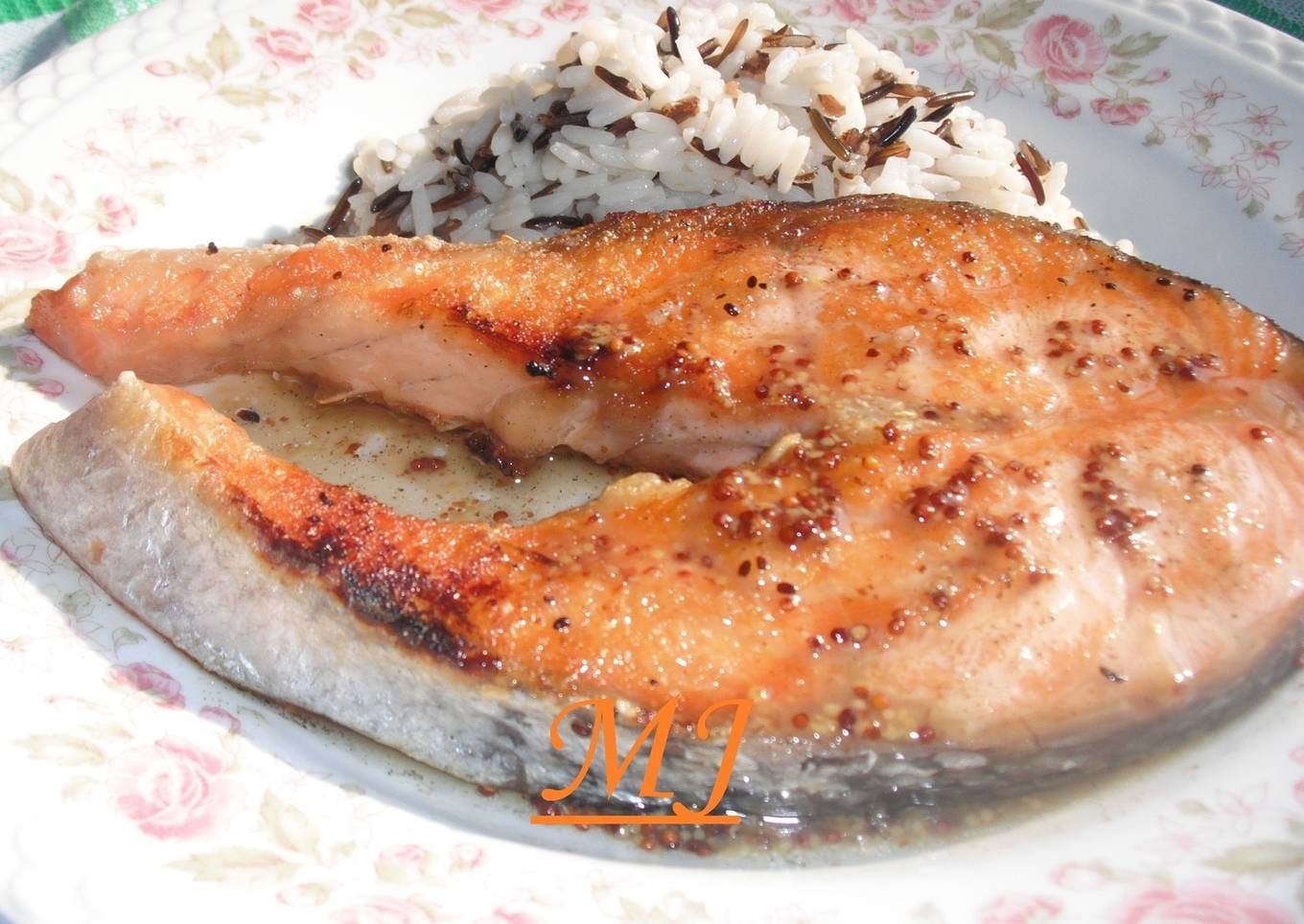 Salmón con salsa de mostaza y miel