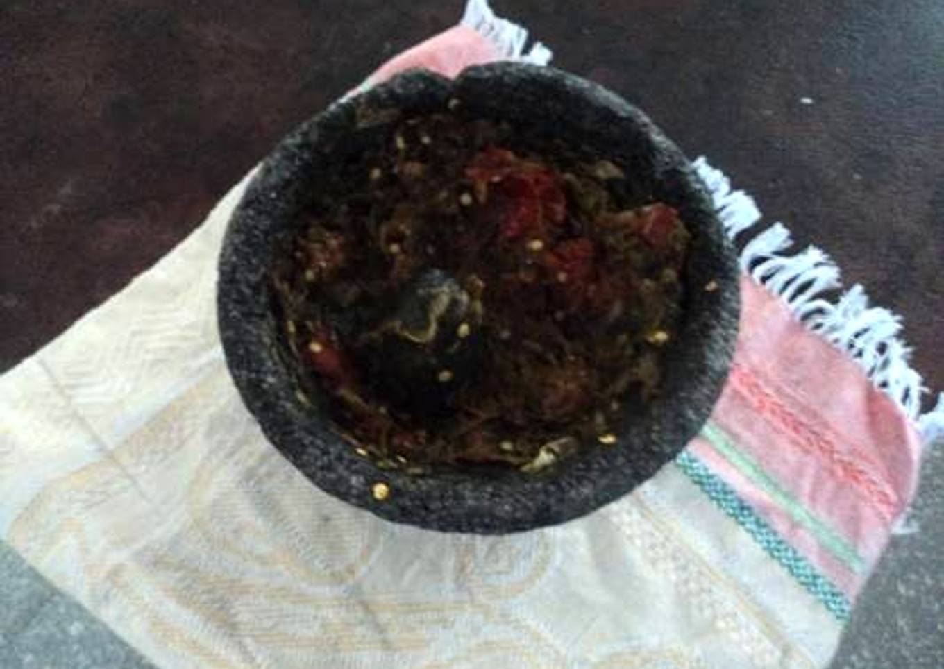 - En un molcajete limpio ponemos primero los ajos, especias y sal, con el malacate machacar muy bien, enseguida molemos los chiles agregándolos poco a poco con un poco de jugo de naranja agria, hecha la pasta agregamos la miel y la canela en polvo, mezclamos muy bien con una cucharita de madera, se usa para adobos de carnes o para acompañar quesadillas.